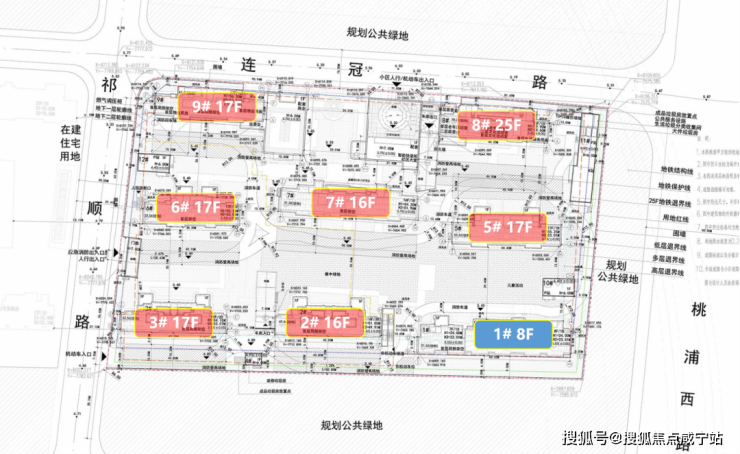 根据设计方案,项目拟建4幢17楼、2幢16楼、1幢25楼产品,另有1幢8楼保障房。从设计方案来看,2#、3#、5#、6#、7#均有入户门厅设计,整个小区局部两层地库,位于6#、3#、2#楼下。社区首层架空,带物业配套用房。