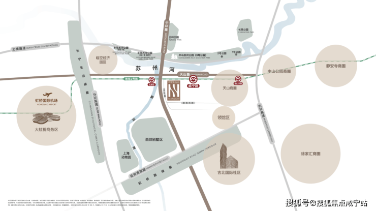 通勤方面,项目直线距离2号线威宁路站约800米、北新泾站约300米,东向2站中山公园,4站静安寺,6站人广。西向3站虹桥机场,4站虹桥火车站。