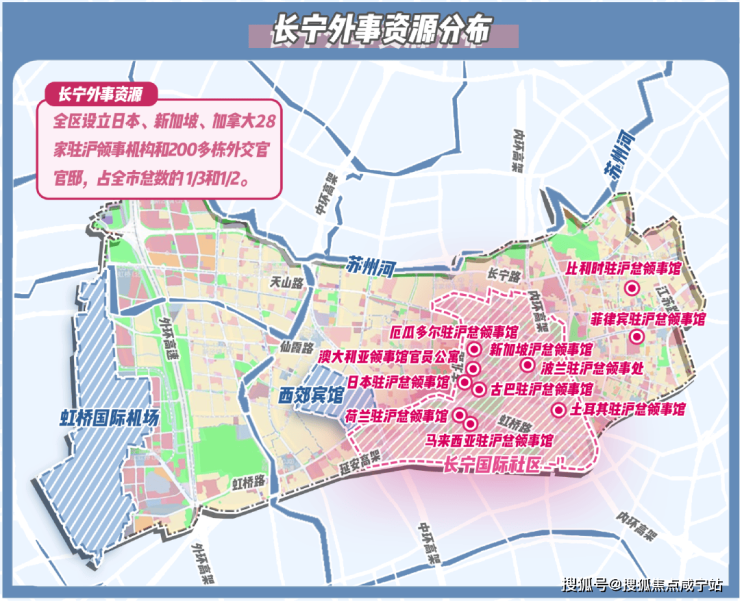 这一点首先体现在外事资源上,28家驻沪领事机构、200多栋外交官官邸在此落户,占全市总量的三分之一和二分之一。