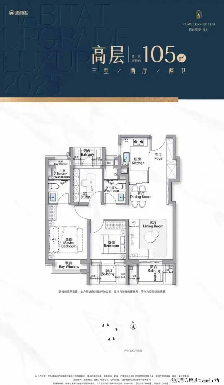 以105㎡的户型为例,“三阳台”搭配花池的设计,直接性价比拉满,按照规定:三个阳台只算一半面积,花池不算面积,加上主卧+卫生间还带飘窗 (主卧飘窗非承重结构) ,如此算下来,对购房者而言,日常可以实打实 利用到的面积是远超市面上其他三房产品。