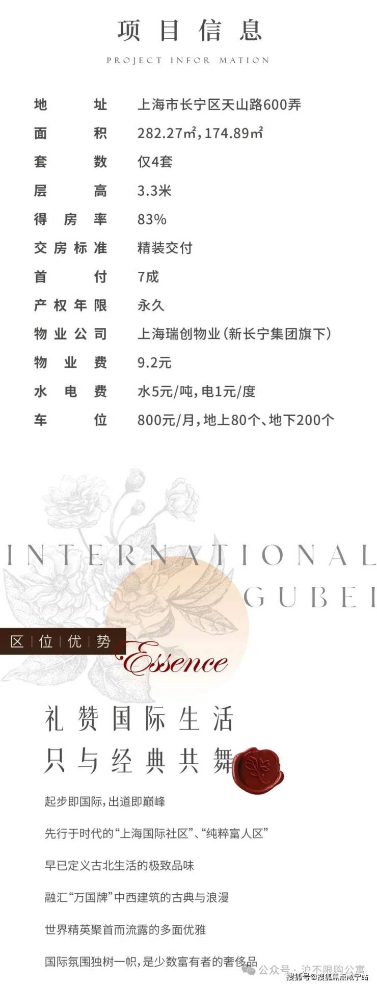 【古北·逸庐】送学区的公寓,单价仅3.8+,,长宁古北精装大平层,面积283㎡,得房率83.7%,通燃气,带3阳台点击输入图片描述(最多30字)认购送:✅送一篮子重点学区子女就学方案✅送5年物业费✅送5年停车…