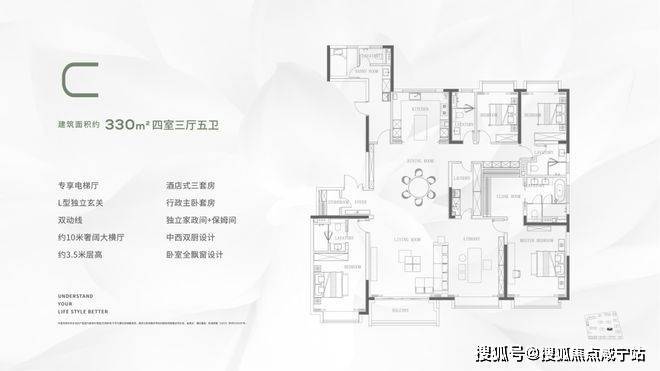 层高对于缦云上海的纯大宅社区定位,能买这样产品的购房者会非常在意空间感。缦云上海全部户型层高约3.3米,室内所有空间的门都做了通顶设计,更阔绰的居室空间,将生活格局有效放大,通风、采光和观景体验的全方位提升!