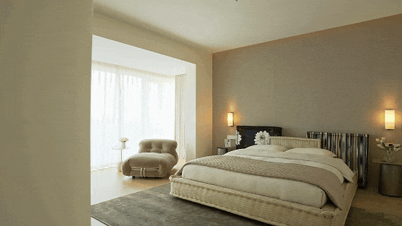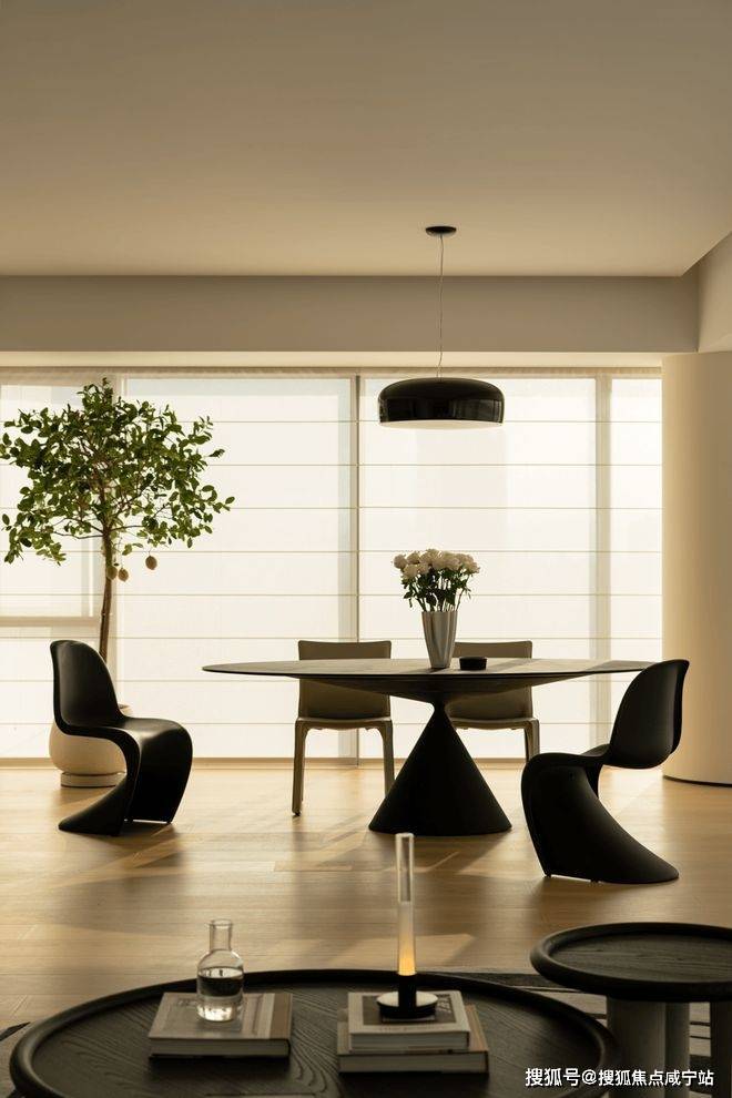 全开放式设计,岛形沙发打破边界,让交流随光影自由发生。午后的光线从侧面洒落,家具被赋予立体的光影层次。