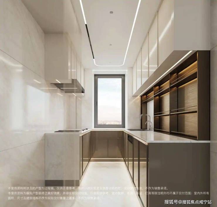 然而,一个项目是否真正重视产品,厨房和家政空间往往是一眼见分晓。保利•外滩曜在这一块的做法,是给中等面积段配上“豪宅级”的家务动线。115㎡户型的厨房采用标准U型布局,把“拿—洗—切—炒”打通成一条顺手的动线。操作台面顺着橱柜围合在三面,过道留出约900mm合适宽度,两个人一起下厨也不拥挤——既不是狭长走廊,也不会浪费面积。
