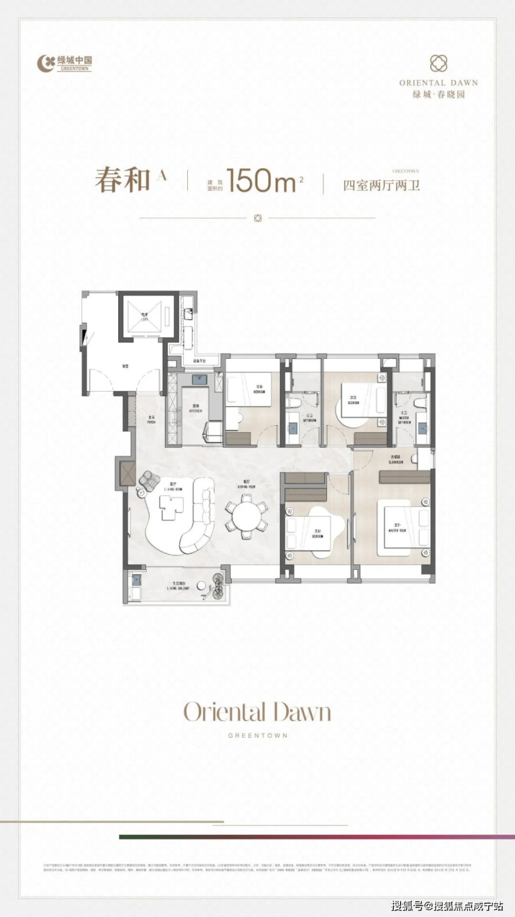 「春和A丨 150㎡ 4房2厅2卫」横厅 两南两北