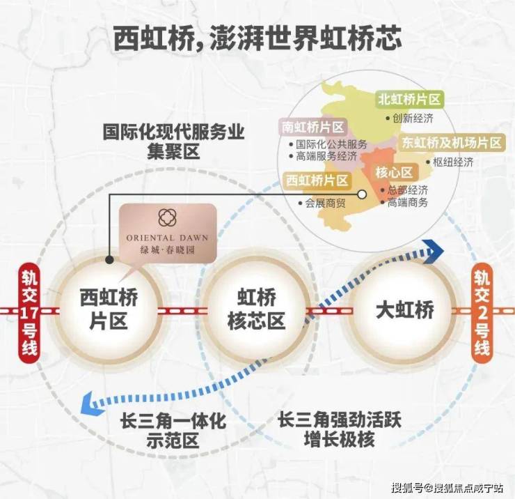 绿城·春晓园 项目位于西虹桥片区徐盈国际住区板块。《虹桥国际开放枢纽中央商务区“十四五”规划》提出:虹桥商务区2025年要基本建成虹桥国际开放枢纽核心承载区,不再以主城区、拓展区划分,而是以“一核四片”为总体格局。根据虹桥商务区中近期规划,虹桥商务区核心区面积约19.5平方公里,整个核心区内规划了200万㎡办公、100万㎡商业。到2035年,就业岗位将达到约110万个,比起当前,增长率超过100%。光是商务核心区,当下已入驻8700家企业,约5万员工,未来将提供12万工作岗位。