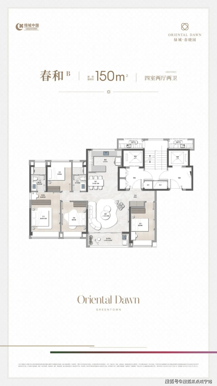 「春和B丨 150㎡ 4房2厅2卫」飞机户型 4开间朝南 一梯一户