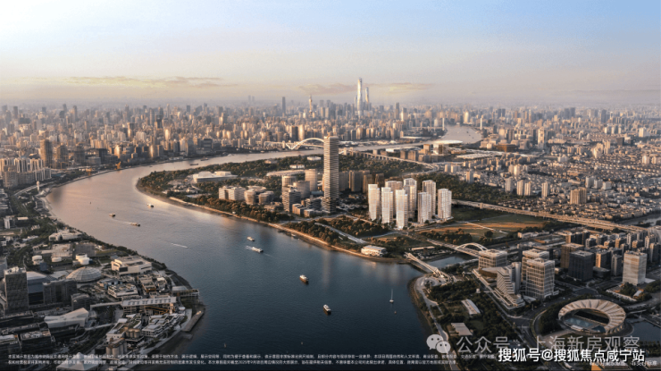 空间布局:九栋25-32层住宅楼以“围合+开放”模式排列,西部楼栋转向设计确保江景最大化,东部楼栋则面向中央景观湾。所有住宅首层全架空,设置下沉式庭院、地下会所及风雨连廊,形成“地面无车位、人车完全分流”的纯净社区环境。