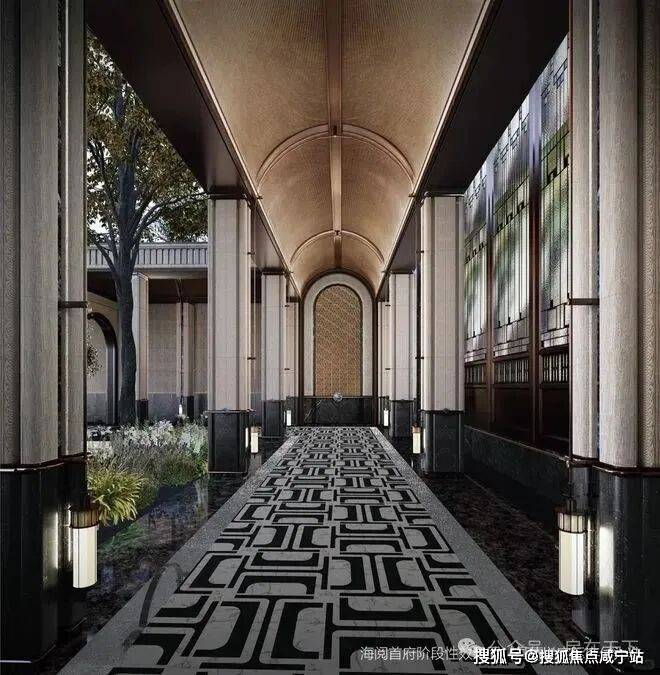建发海阅首府售楼处电话☎:400-8800-703【售楼热线】✔✔✔特别是下面这样一个时光长廊,将社区中的风雨连廊经由海派风格重新演绎,拱形的吊顶、石材的立柱、繁花的地面拼花,让人梦回那老上海的摩登年代。
