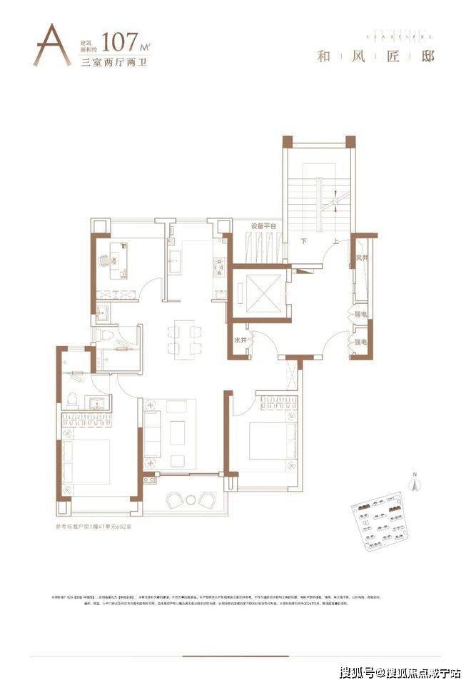建筑面积约107㎡三房两厅两卫: