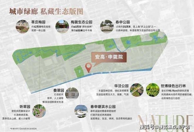 生态方面, 更是不遑多让。项目周边近百万方的大型生态公园环绕:约60万方的梅陇生态公园、约12万方的莘庄梅园、约24万方的黎安公园......感受快节奏都市生活中难得的生态空间,主打生态宜居。