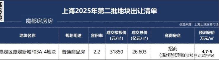 今年的第2批次土拍,位于嘉定新城板块的【嘉定新城FO3A-4地块】触发首轮终止、溢价30%成交,未来单价或可达6万/㎡!