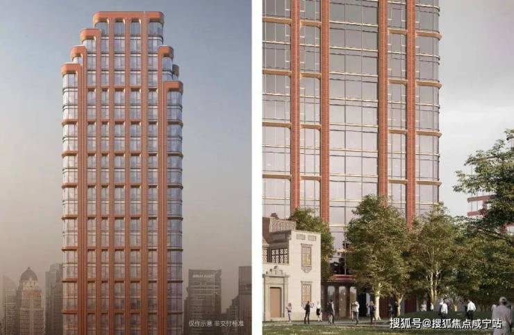 整个建筑的外立面将经典的Art Deco立面风格与海派文化相结合,用Art Deco常用的竖向线条来解决高层建筑的挺拔感、用红色陶板来勾勒出海派老洋房的红砖意象,呼应历史、但又符合现代人高级审美。