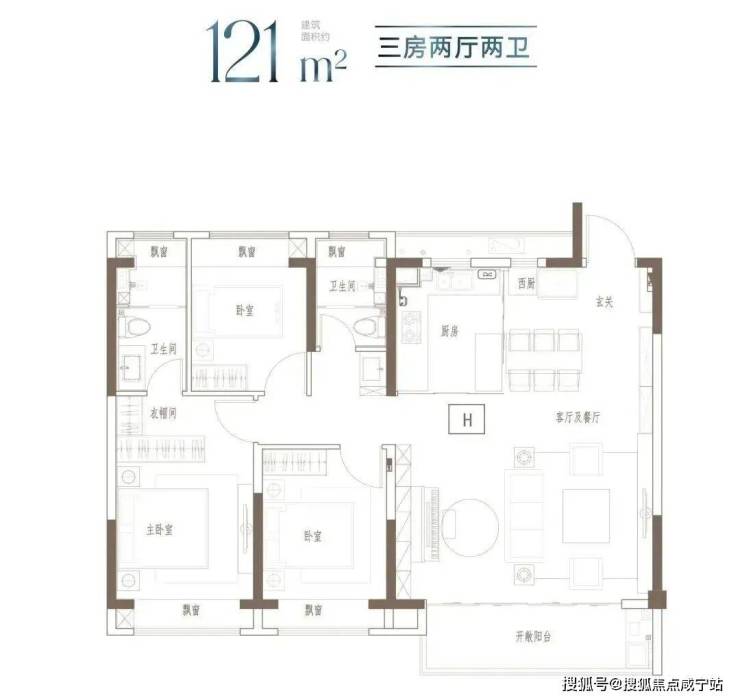 户型特点:3开间朝南,全屋阳光充足;L型厨房转角移门设计,最大化空间视野;四飘窗设计,通透空间享受;动静分区,亲密有度;套房式主卧,容纳私谧生活点滴;