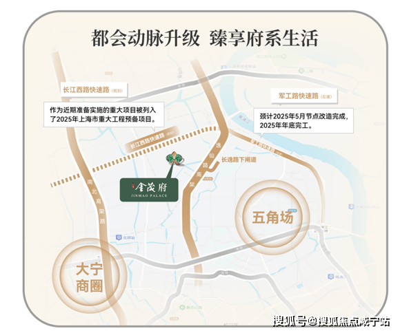 更有中环北抬计划超级兑现力(军工路快速路预计今年完工,长江西路快速路预计即将开工),中环北抬之后的「江湾金茂府」直接升级为内中环豪宅,环线升级带来的溢价力也是相当值得期待~