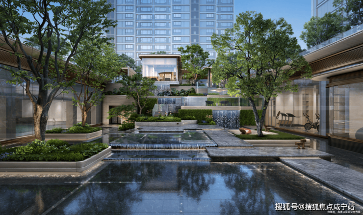项目以外滩精奢酒店&江湾蓝绿臻境为灵感,打造三重台地悬瀑自然庭院!创新打造的立体景观让人眼前一亮!