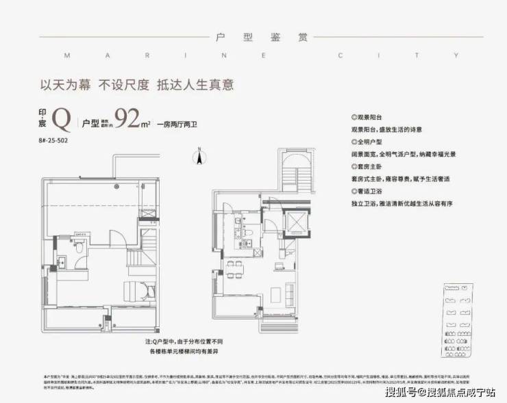 除了高层户型,项目还有建面约90-136㎡叠墅户型。叠加的优点非常多,相较于大平层,叠加区域分割清晰,会客区、休息区等可以明显区分开,互不干扰。同时,居住的私密性强,给到墅居的空间感,得房率相较于高层产品也更高。作为居住业态的高阶形态,舒适度和仪式感也更胜一筹!