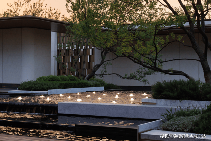示范区首批次公开的约650㎡的无界水院,通过层层叠水与精选树种的巧妙搭配,展现了水院的悠然意境。