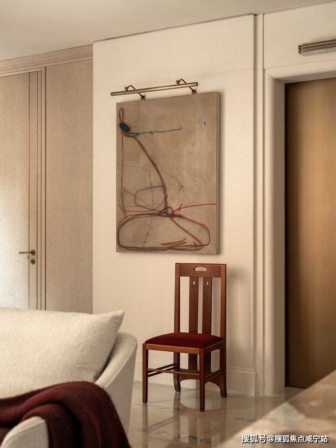 在动线设计上,影音雪茄室取消了独立门扇,书柜处被设置为通道。