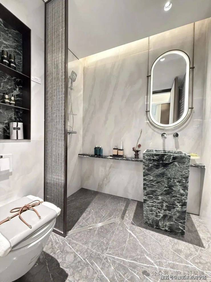 立面腰线等细节处则提炼汝窑“金线”传奇符号,以还原精雅的繁复工艺,为建筑线条进行金线勾边,点睛强烈而隽永的美学仪式感;较高的窗墙比延伸视野边界的同时,呈现极简派超高颜值…诸如此类的精工细节不胜枚举,真正做到了坚持骨子里东方文化标签,用现代材料与传统技法相结合,打造出符合现代审美需求的高质人居产品。