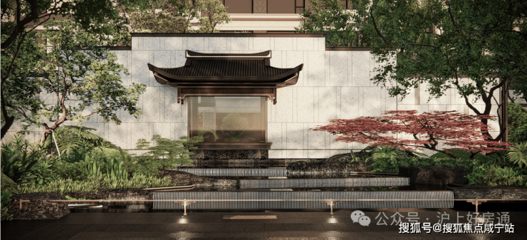 第二景-风帘翠幕:进入青承门后,是一方精致的芭蕉庭院,让业主有一个洗尘归心的宁静体验。