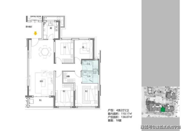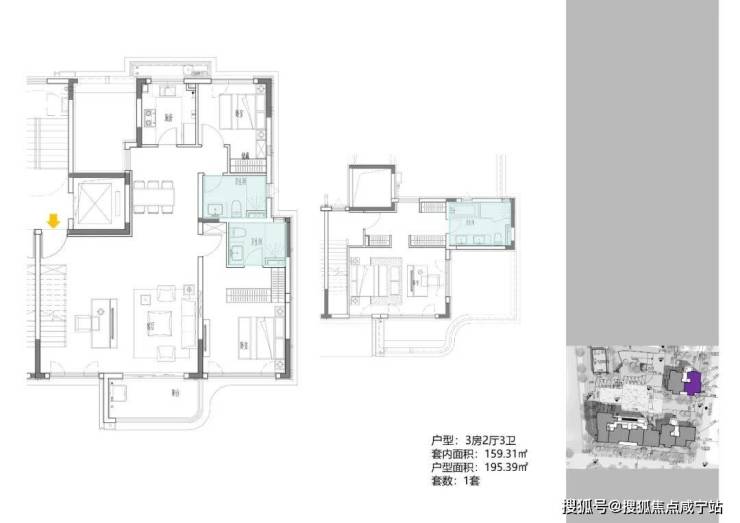 B地块容积率2.94,只有一栋小高层,共67套房源,产品建面约108-148㎡。