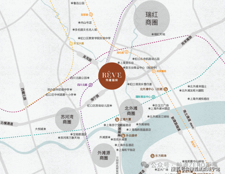 商业配套:利通广场、壹丰广场、中信广场、1933 购物中心等在步行距离内,直线距离北侧瑞虹新城三件套约 1.5 公里。