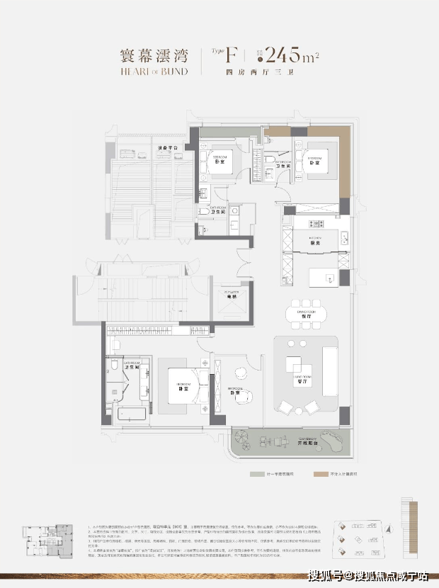 一期125㎡、245㎡都已经是豪宅级尺度设计。以约245㎡江景大平层为例: