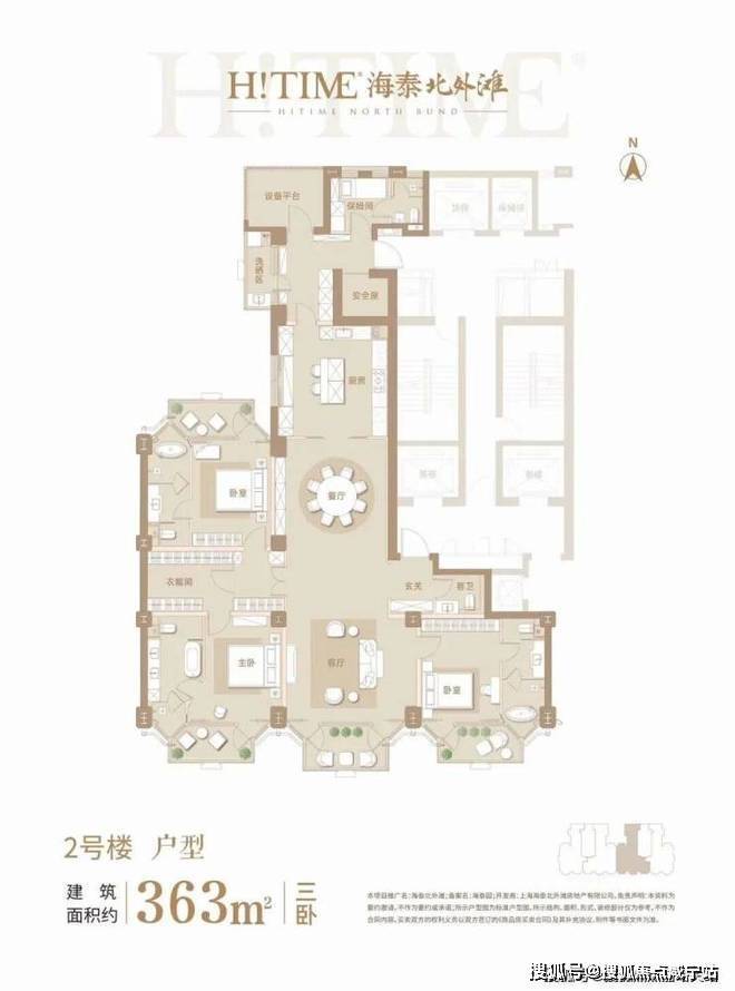 1.建面约110㎡三房两厅两卫:作为北外滩板块核心极为稀缺的“入门级高端改善人居”,该户型主打“紧凑舒适、全明通透、滨江视野”,户型方正通透,三开间朝南,南向总面宽突破9.5米,采光通风效果极佳.4.0米宽景客厅连接景观阳台,将社区现代园林与北外滩滨江景观化为私藏画卷,闲暇时可俯瞰郁郁葱葱的绿意与静谧滨江景致;主卧套房设计,配备独立卫浴与观景飘窗,保障主人的私密性与舒适度;两个次卧空间宽敞,可作为儿童房、书房或客房,满足家庭不同阶段的需求;厨房采用U型设计,操作空间充足,搭配西门子高端嵌入式厨电,兼顾实用性与美观度;卫生间干湿分离,细节之处尽显人性化.该户型总价约1700-1815万,以友好门槛实现北外滩核心人居的准入,适合追求核心地段、注重生活品质的城市精英或小型高端改善家庭.