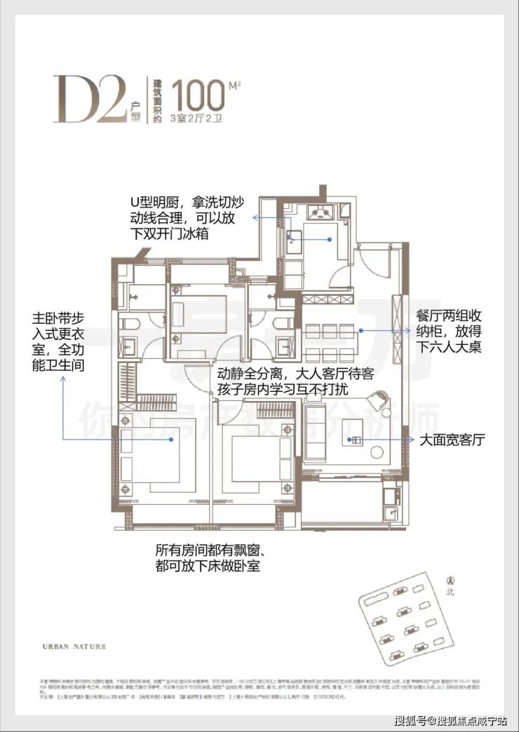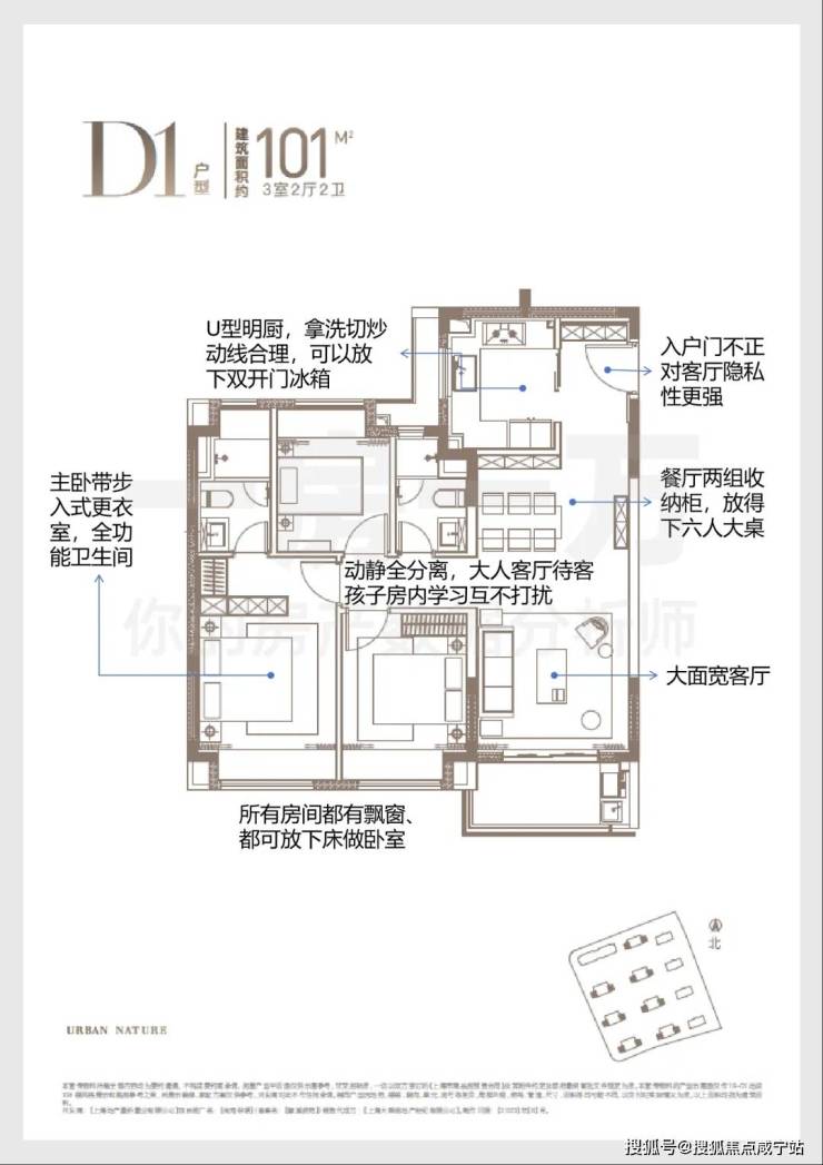 其中,主力建面约100、101平方米的3房2厅2卫:空间舒适度更高,两个卫生间的配置,私密性更好;主卧套房设计,更有步入式衣帽间,让生活更从容。