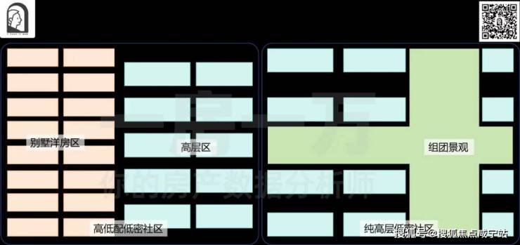 通常情况下,高低配社区为了平衡容积率,实际高层区的容积率会超过2甚至是2.5,而纯小高层社区不需要为了别墅压缩高层的空间,这意味着,高层的楼间距更大,项目拥有更多的面积来做配套和景观。