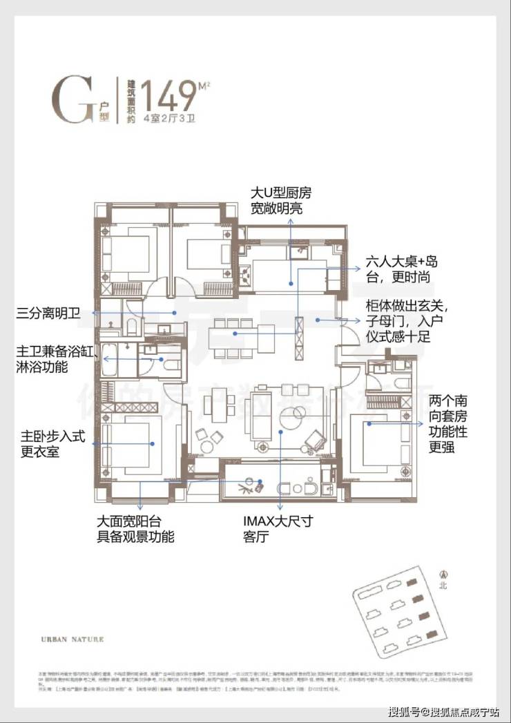 建面约149㎡4房2厅3卫:大横厅、双卧朝南、大阳台,绝对的顶配享受。