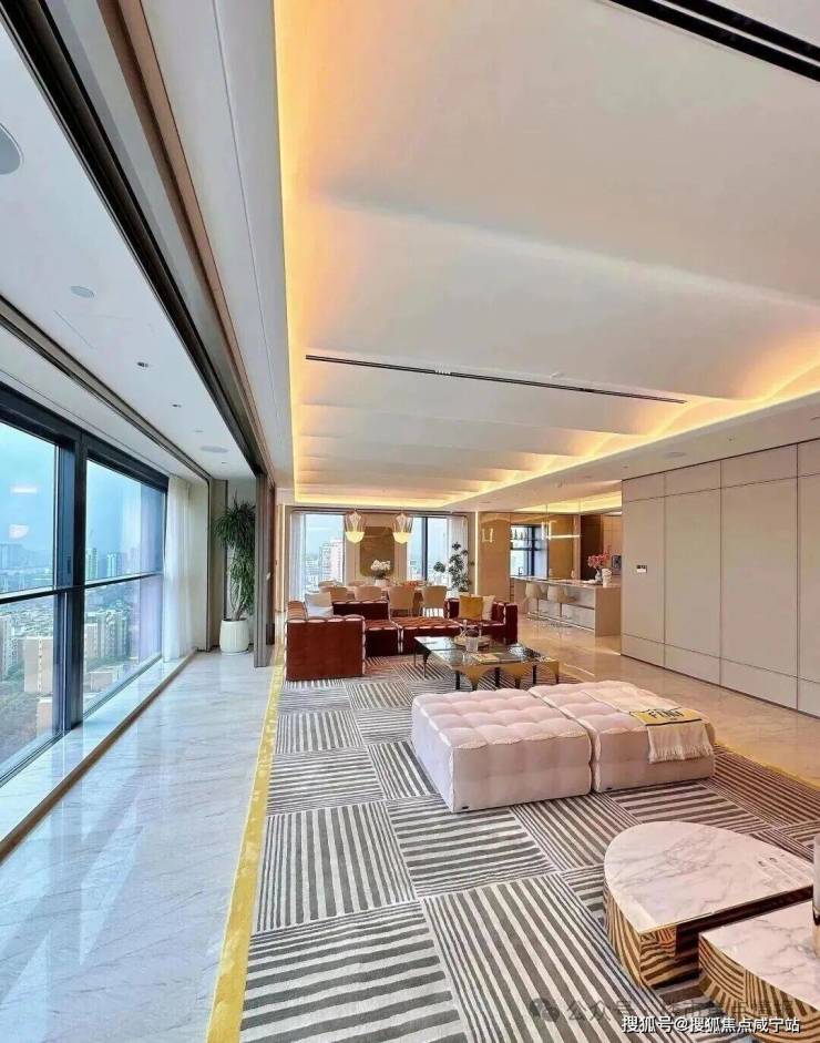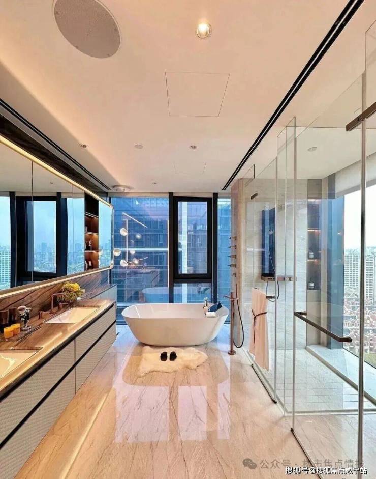 装修上,将时尚与奢华巧妙融入每个角落,所有的窗帘、移门、提升窗、灯光、空调、新风、地暖都可以通过手机远程控制。