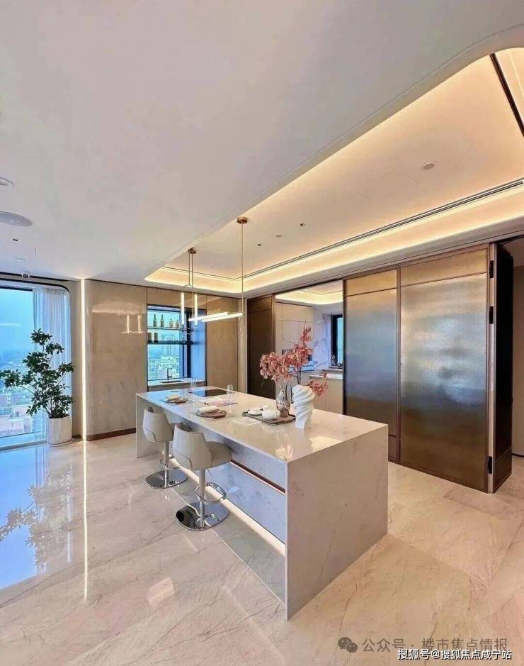 比如采用奢石静雅棕石、雪山银狐石、月光白石、挪威木纹石等石材;