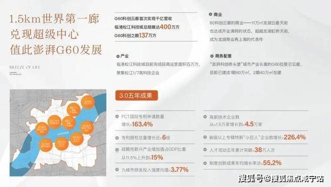千亿G60引领超级产业中心。松江洞泾G60科技城板块,堪称长三角一体化及一带一路的“交汇策源点”,是贡献全国1/15GDP的重要经济命脉。这里产业空间超250万方,已进入厚积薄发的超级兑现期。