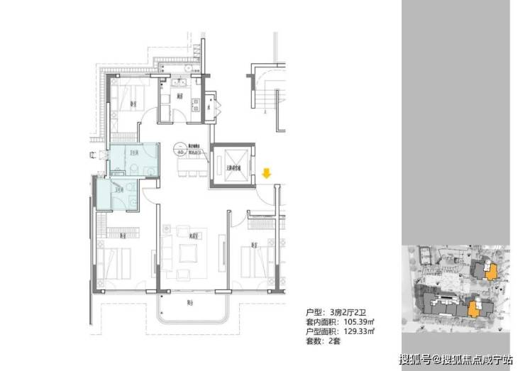 B地块容积率2.94,只有一栋小高层,共67套房源,产品建面约108-148㎡。