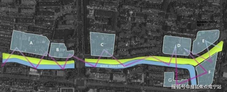 设计中将7个独立的地块与滨水空间相结合, 通过对商业、绿化、广场界面的有机穿插、整合成为一个与景观河道交相辉映、有节奏的公共长廊,提升滨水区域的环境品质。