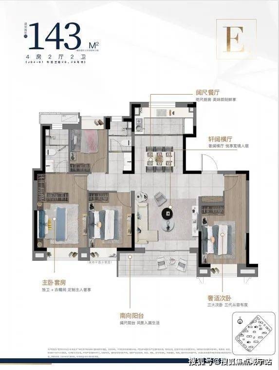 户型碾压市场:主力93-143㎡三至四房,67%为100㎡以上改善户型!143㎡四房全南向+三卧飘窗,秒杀同区产品1;