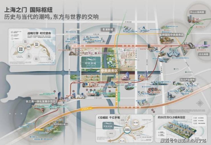 青浦新城中央商务区,以青浦新城地铁站为核心的约6.5平方公里土地,总开发体量超750万平方米,采用国际新城开发模式,将商务办公、交通枢纽、文化休闲高度集合起来,打造成为宜居宜业的国际滨水新城,投资超千亿!