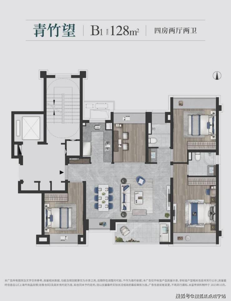 建面约128㎡四房两厅两卫,保障业主的全生命周期需求。扁平化的户型设计,采光面更加奢阔,短进深通透性更佳。餐客横厅+四卧全飘窗+独立玄关+独立工作区,满足三代同堂的生活需求。
