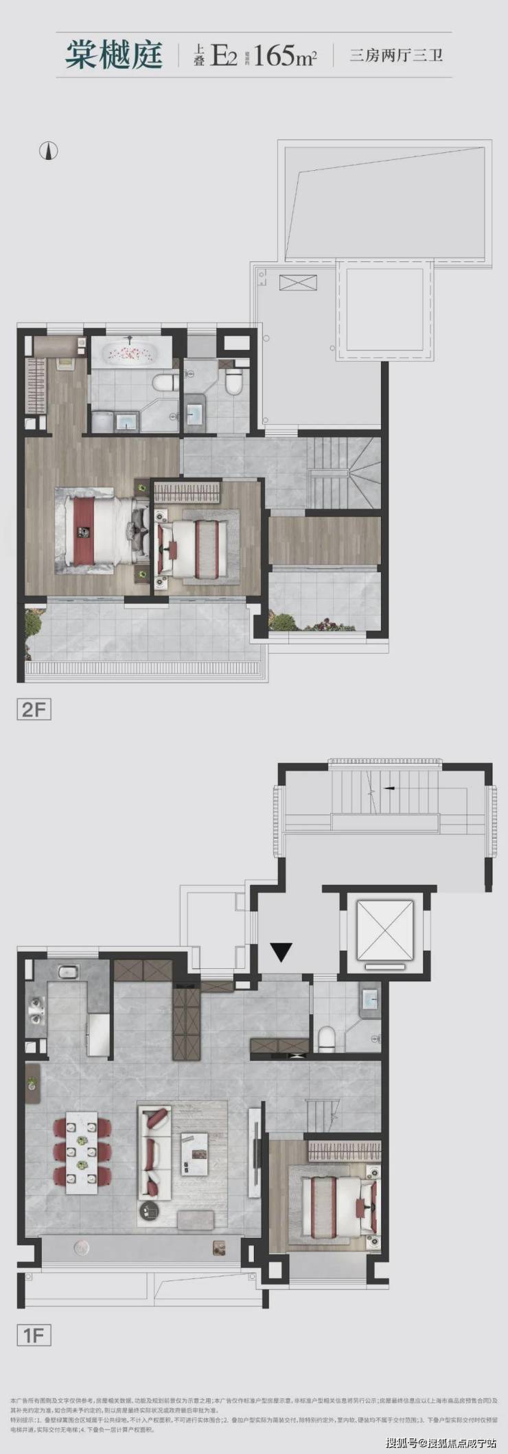 建面约165㎡上叠,户型设计也是可圈可点: