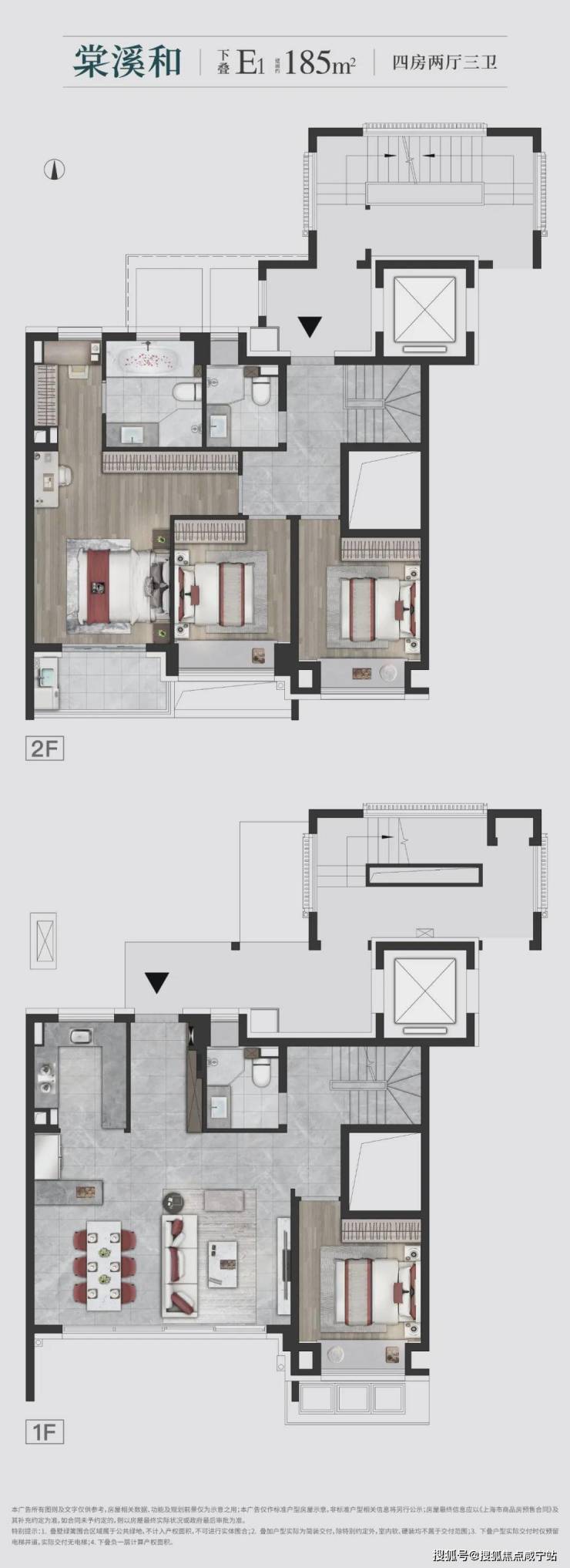 建面约185㎡下叠,四房格局,更大限度地承载宽奢舒适的生活,享受人生就应如此。