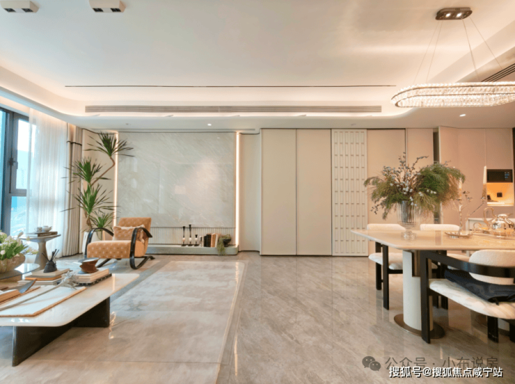 约5米超大宽厅设计,约9米纵深,餐客厨的空间大约在43㎡左右,空间感媲美市面上120㎡的户型。