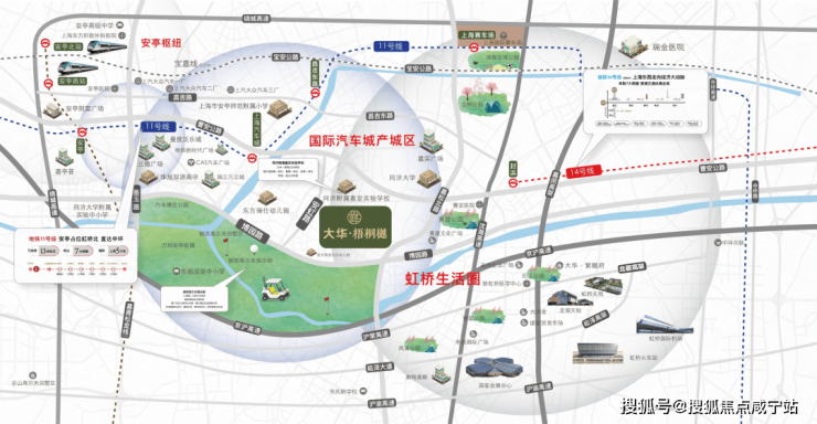 项目距离11号线上海汽车城站约2.4km,不算真正意义上的轨交房。轨交14号线横亘安亭境内的规划建议,也已提上日程。