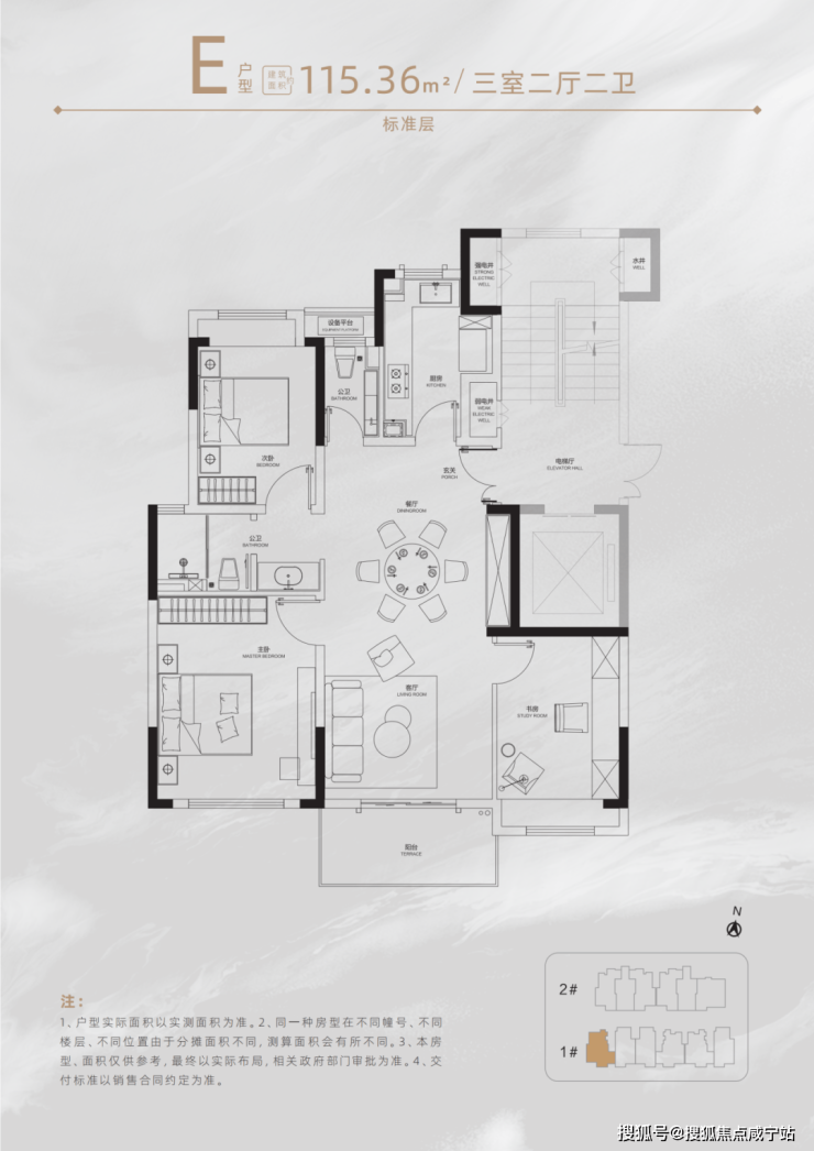 项目推出113套房源,面积段为建面104-148㎡3-4房,并通过约115、约130㎡3房的实体样板间,将高得房率、空间实用性、品质装标转化为可感知的居住体验。