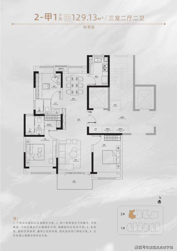 位于18层小高层的约130㎡样板间,得房率约76%,采用两梯两户设计,室内空间适配三代同堂或有二孩需求的高知家庭。