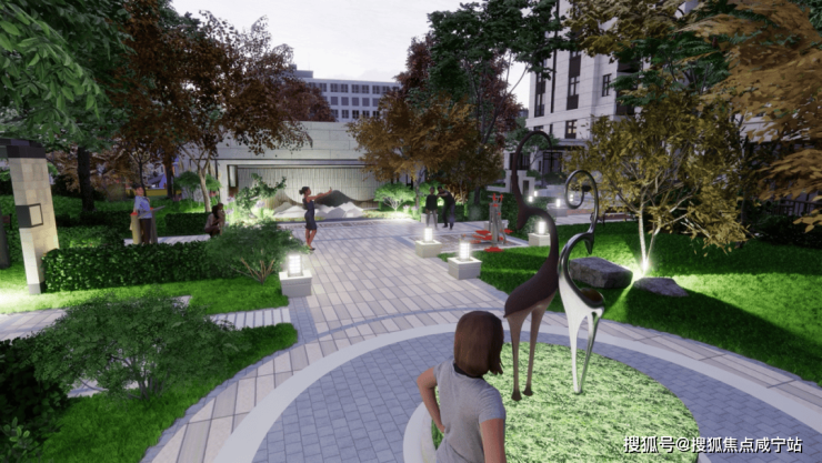 社区以“一轴多节点”为景观骨架,弧形园路引导动线,串联全域风景;中心休闲广场矗立新古典风格景观亭,作为邻里交流的“社区客厅”;弧线小径穿梭于花境与草坪间,衔接各处休闲平台。植物搭配兼顾四季层次,形成“窗前即景”的效果。