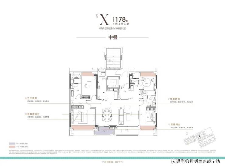 小高层采用"垂直森林"概念,每栋楼设置空中观景平台;叠墅产品首创"双首层入户",下层带40㎡私家庭院,上层享星空露台2。建面106㎡三房创新设计家政间+双卫,解决二孩家庭收纳难题1。