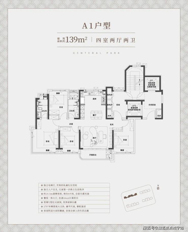 建面约139㎡4房户型,套数不多,但产品力绝对惊艳。