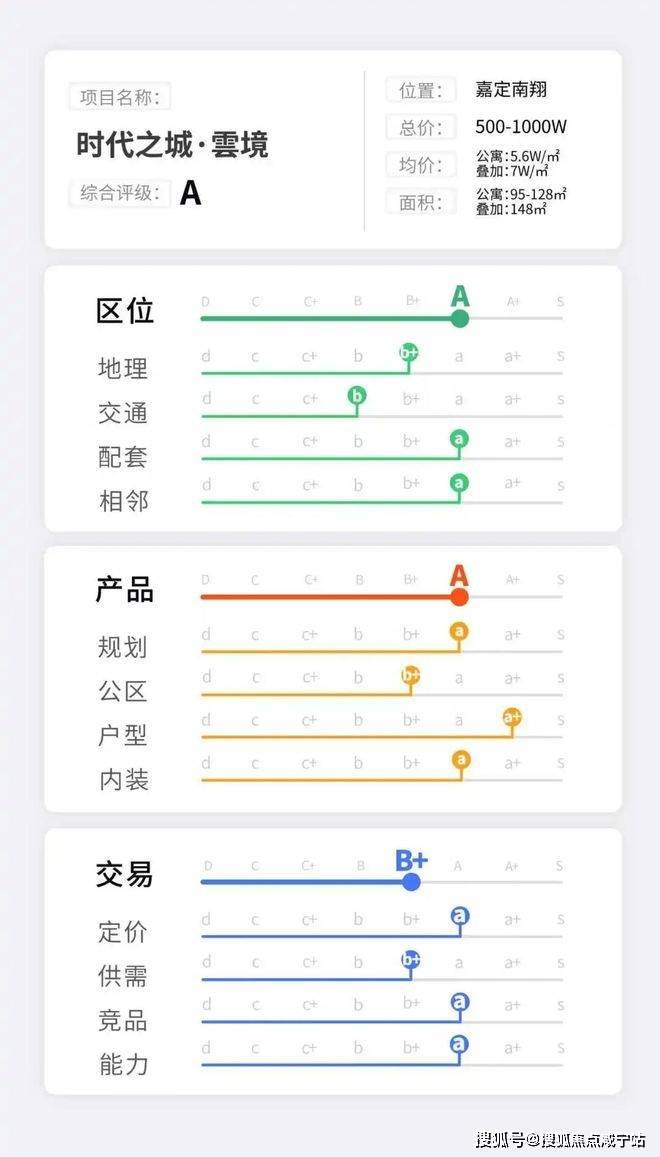 说到南翔,最旺销的项目就是时代之城了。这个项目,从一开始综合实力就很突出, 我们最初给它的综合评级是A,产品力更是达到A+,交易评级也一直稳定在A级